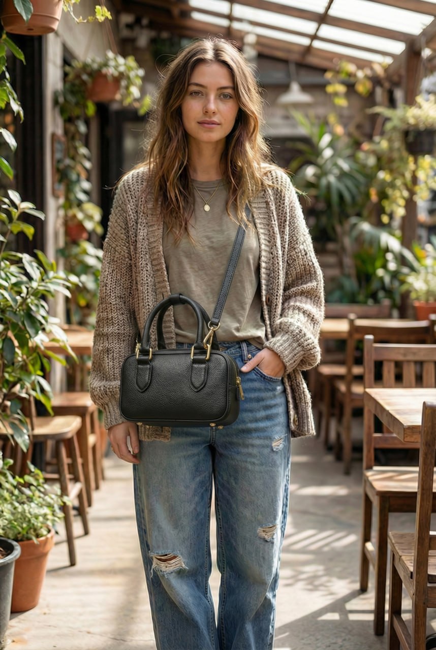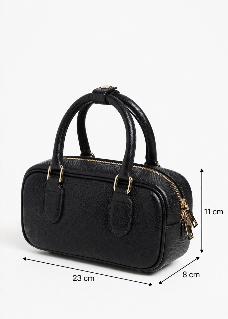 Geanta Daily Mini „Black” este realizată din piele naturală 100%, oferind un aspect elegant și o rezistență îndelungată. Datorită formatului său compact și dimensiunilor de 23 × 11 × 8 cm, aceasta este alegerea ideală pentru femeile care preferă un accesoriu practic, dar sofisticat. Designul structurat și liniile curate creează un stil modern și versatil, ușor de integrat în orice ținută. Geanta este prevăzută cu o curea detașabilă, oferind posibilitatea de a fi purtată atât în mână, cât și pe umăr sau crossbody. Compartimentul principal este suficient pentru obiectele esențiale, iar închiderea cu fermoar asigură siguranța acestora. Finisajele de calitate și detaliile atent lucrate evidențiază caracterul premium al produsului.