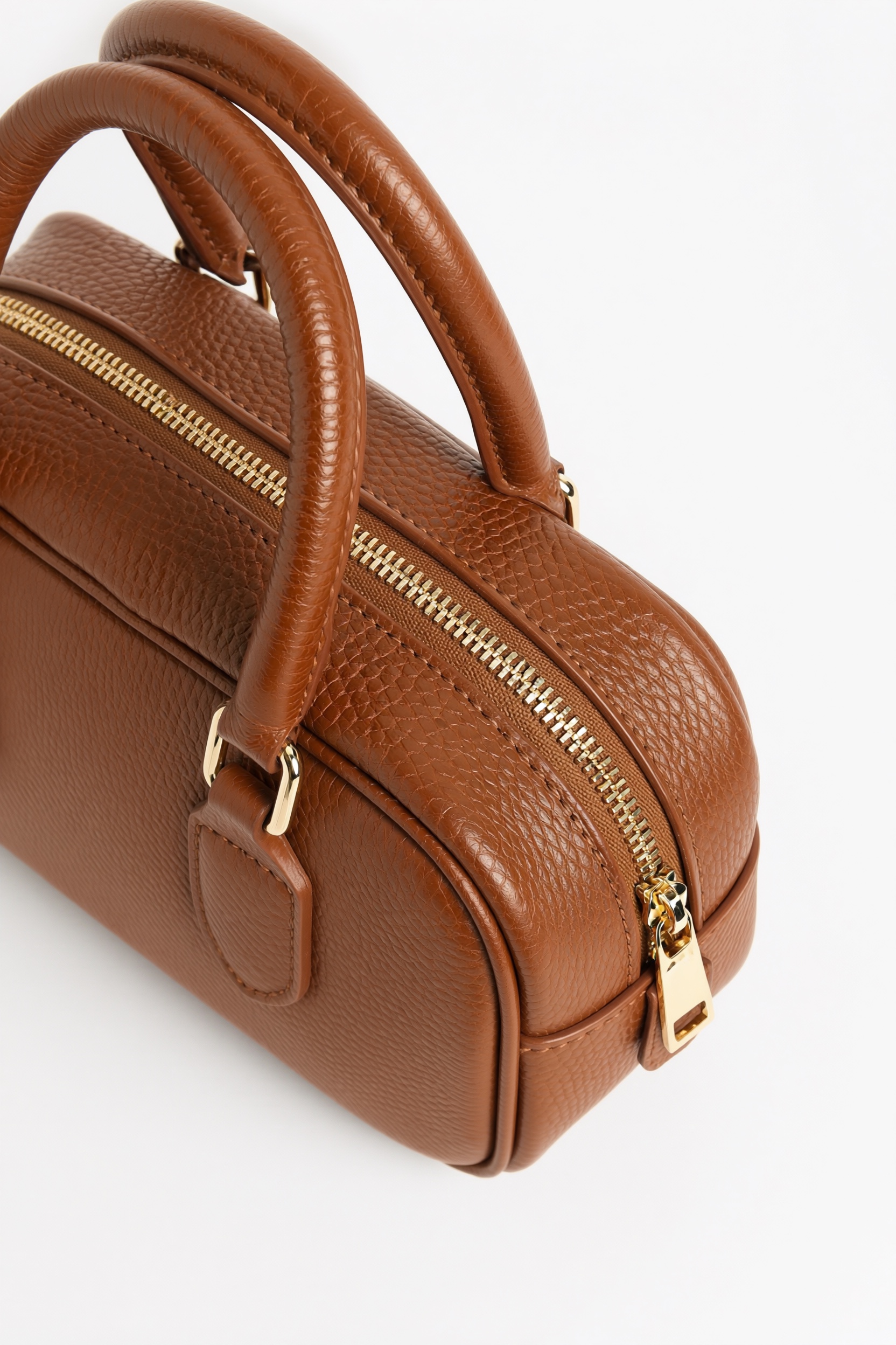 Geanta Daily Mini „Brown” este realizată din piele naturală 100%, oferind un aspect elegant și o durabilitate excelentă. Datorită formatului său compact și dimensiunilor de 23 × 11 × 8 cm, aceasta este alegerea ideală pentru femeile care preferă un accesoriu practic, dar sofisticat. Nuanța caldă de maro adaugă un plus de rafinament și versatilitate, fiind ușor de integrat atât în ținute casual, cât și elegante. Designul structurat și liniile curate creează un stil modern și echilibrat. Geanta este prevăzută cu o curea detașabilă, oferind posibilitatea de a fi purtată în mână, pe umăr sau crossbody. Compartimentul principal este suficient pentru obiectele esențiale, iar închiderea cu fermoar asigură siguranța acestora. Finisajele de calitate și detaliile atent realizate evidențiază caracterul premium al produsului.