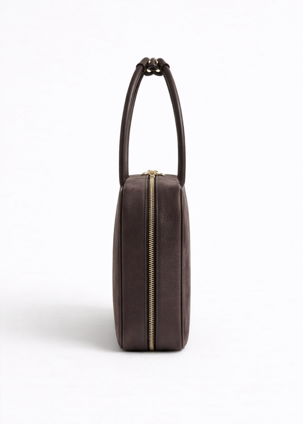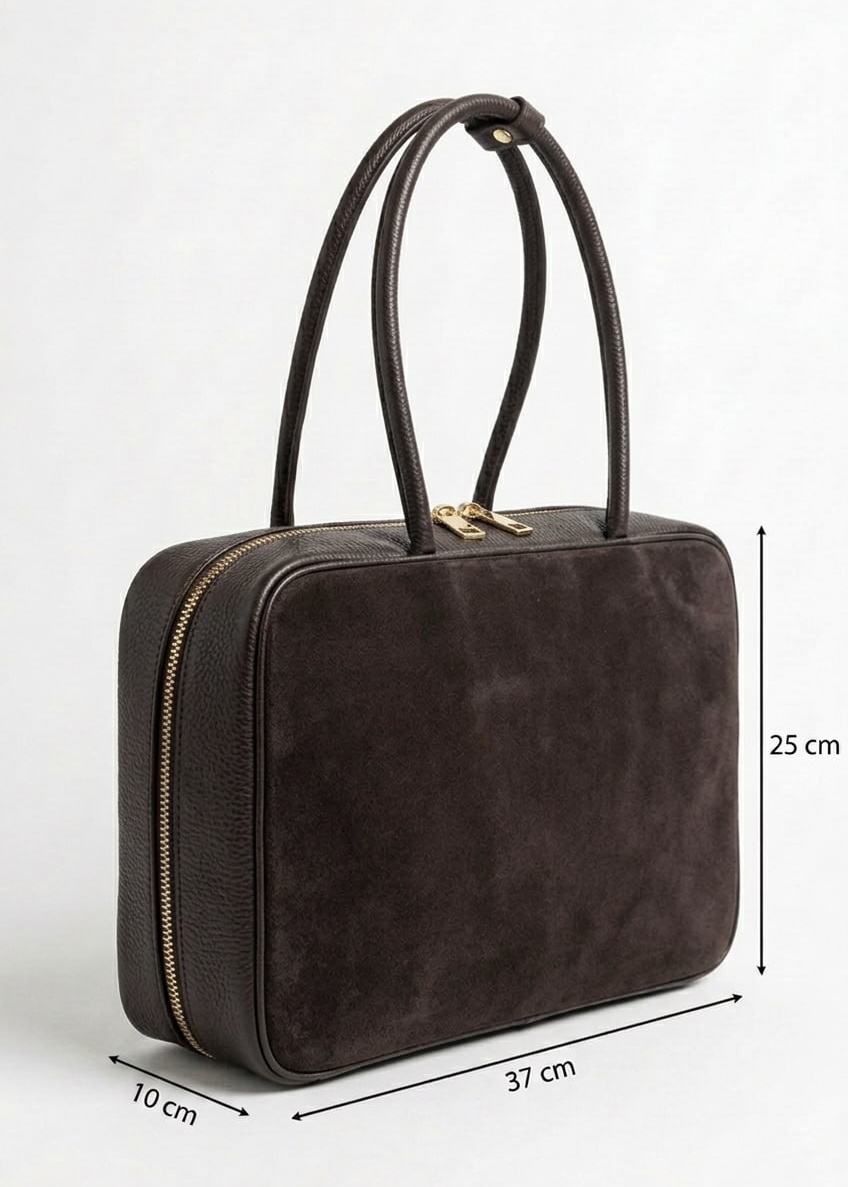 Geanta Luna Classic într-o nuanță profundă de ciocolată neagră reprezintă combinația perfectă între eleganță și funcționalitate zilnică. Realizată din piele naturală întoarsă (suede) 100%, provenită din Italia, aceasta oferă o textură fină, catifelată și un aspect premium.