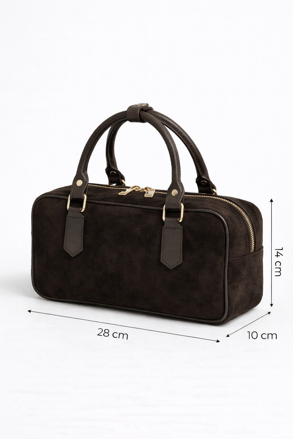 Geanta Siena Suede Bag în nuanța ciocolată neagră este alegerea perfectă pentru un stil elegant și atemporal. Realizată din velur natural 100%, aceasta impresionează prin textura sa catifelată și forma sa structurată.